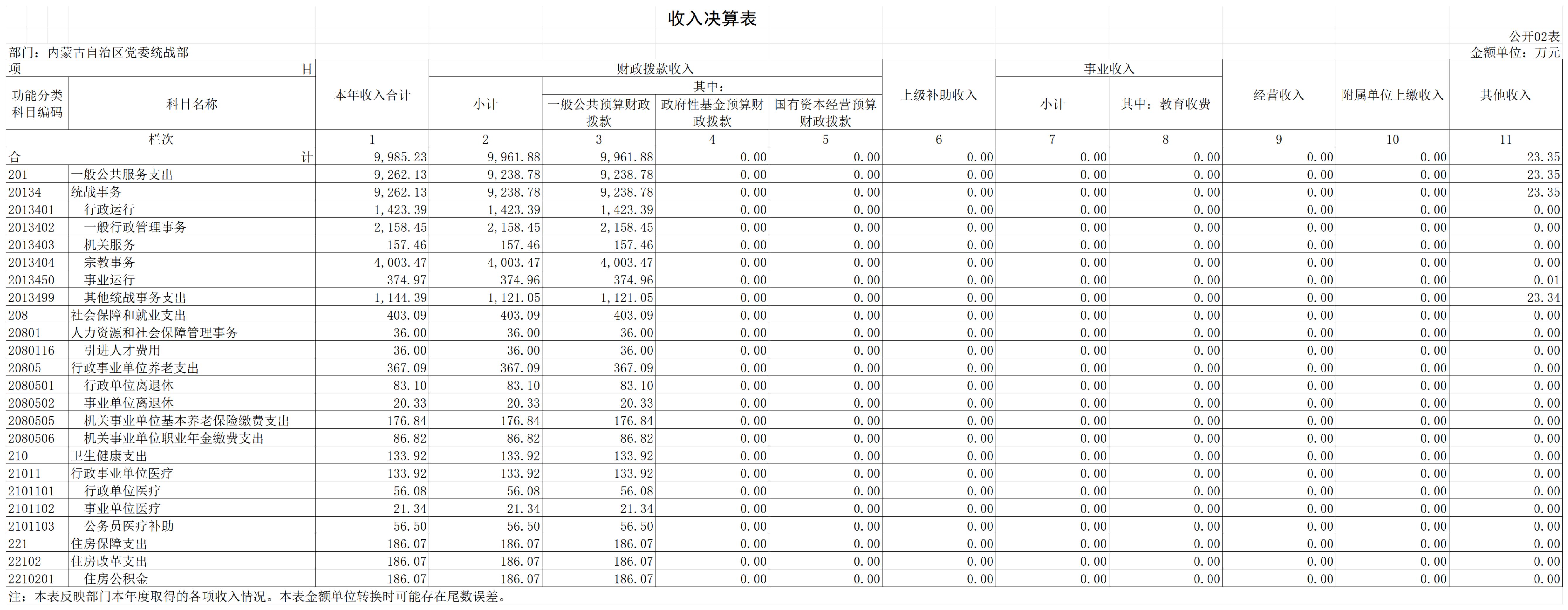 内蒙古自治区党委统战部 2022年度决算公开报告