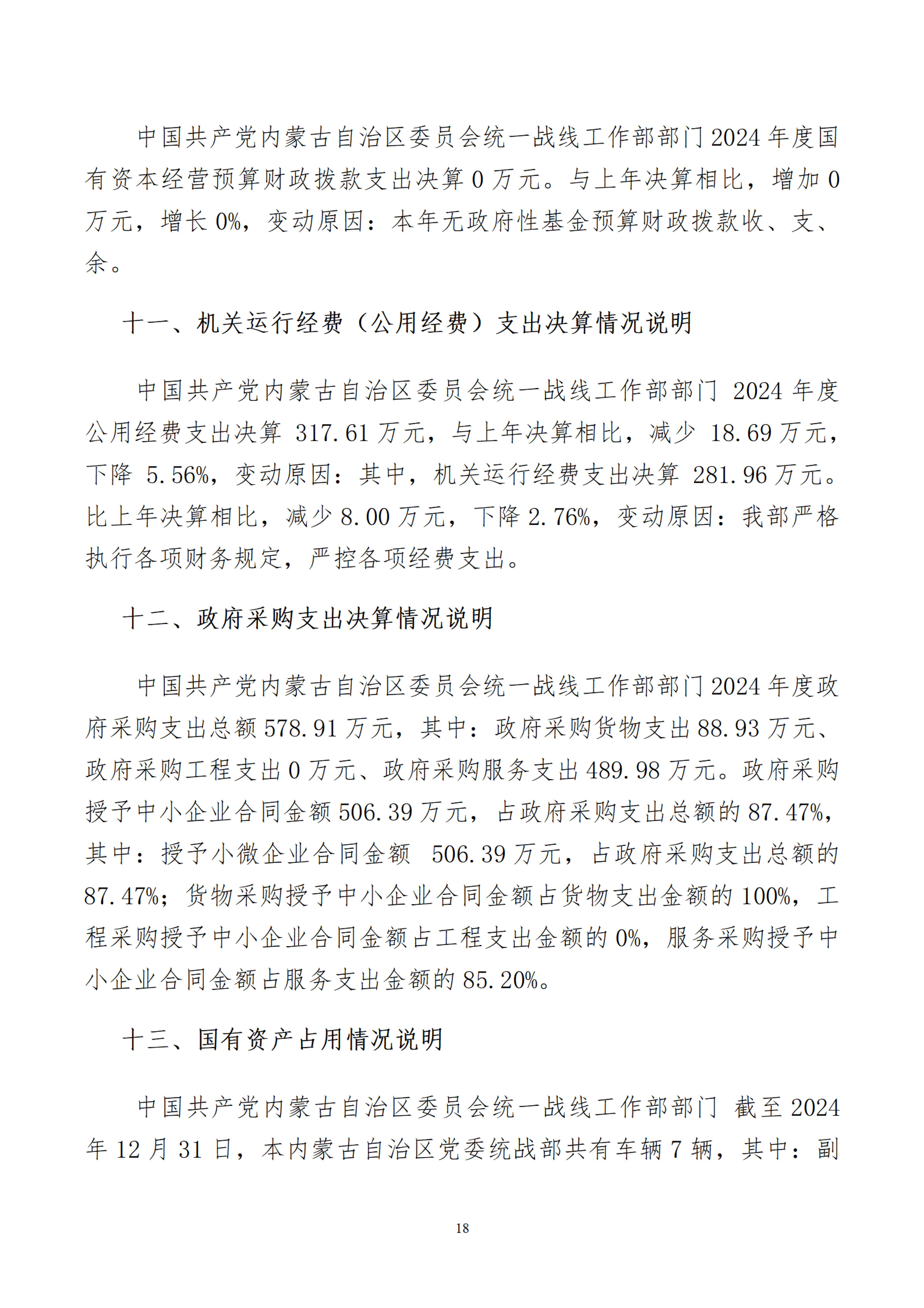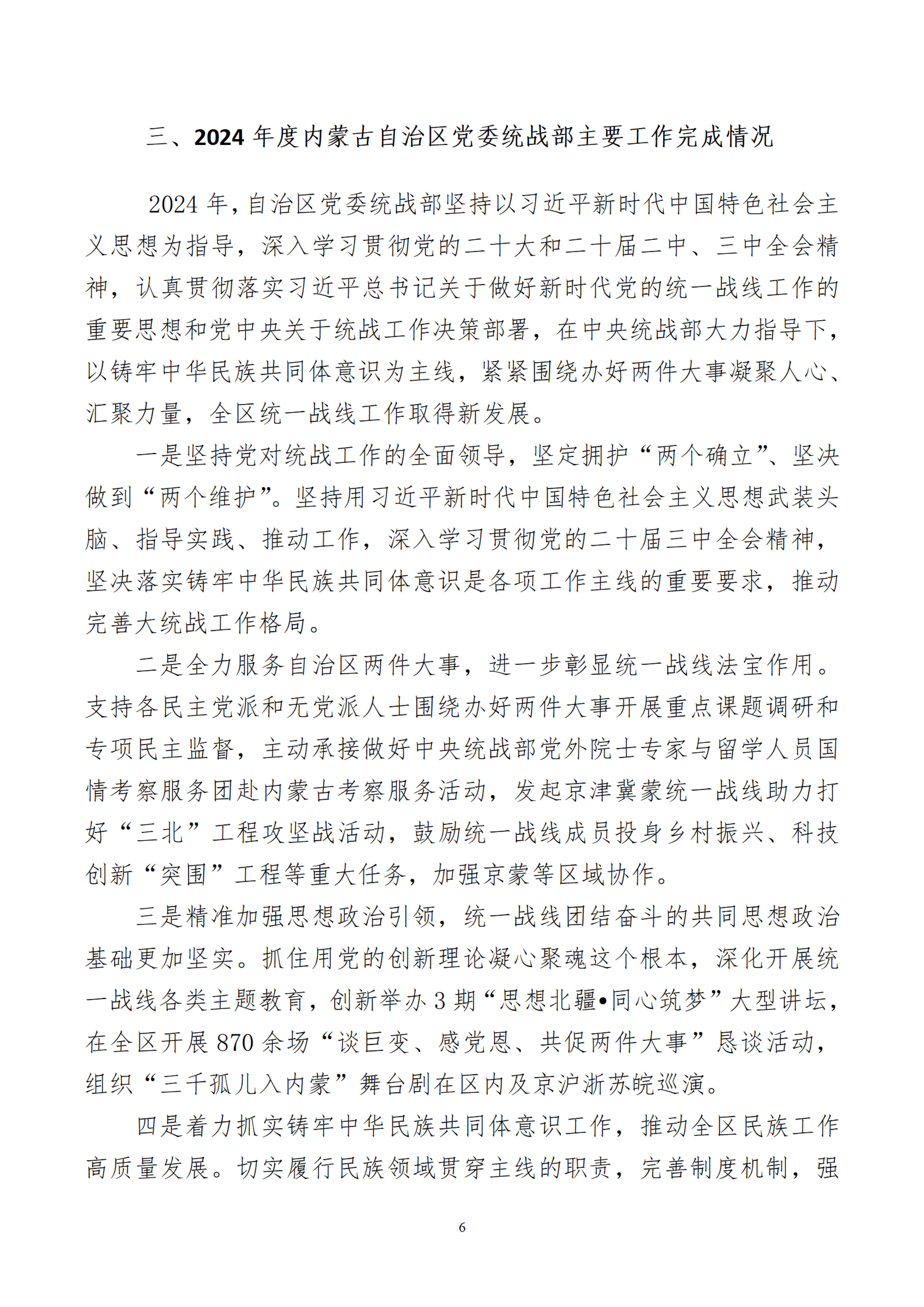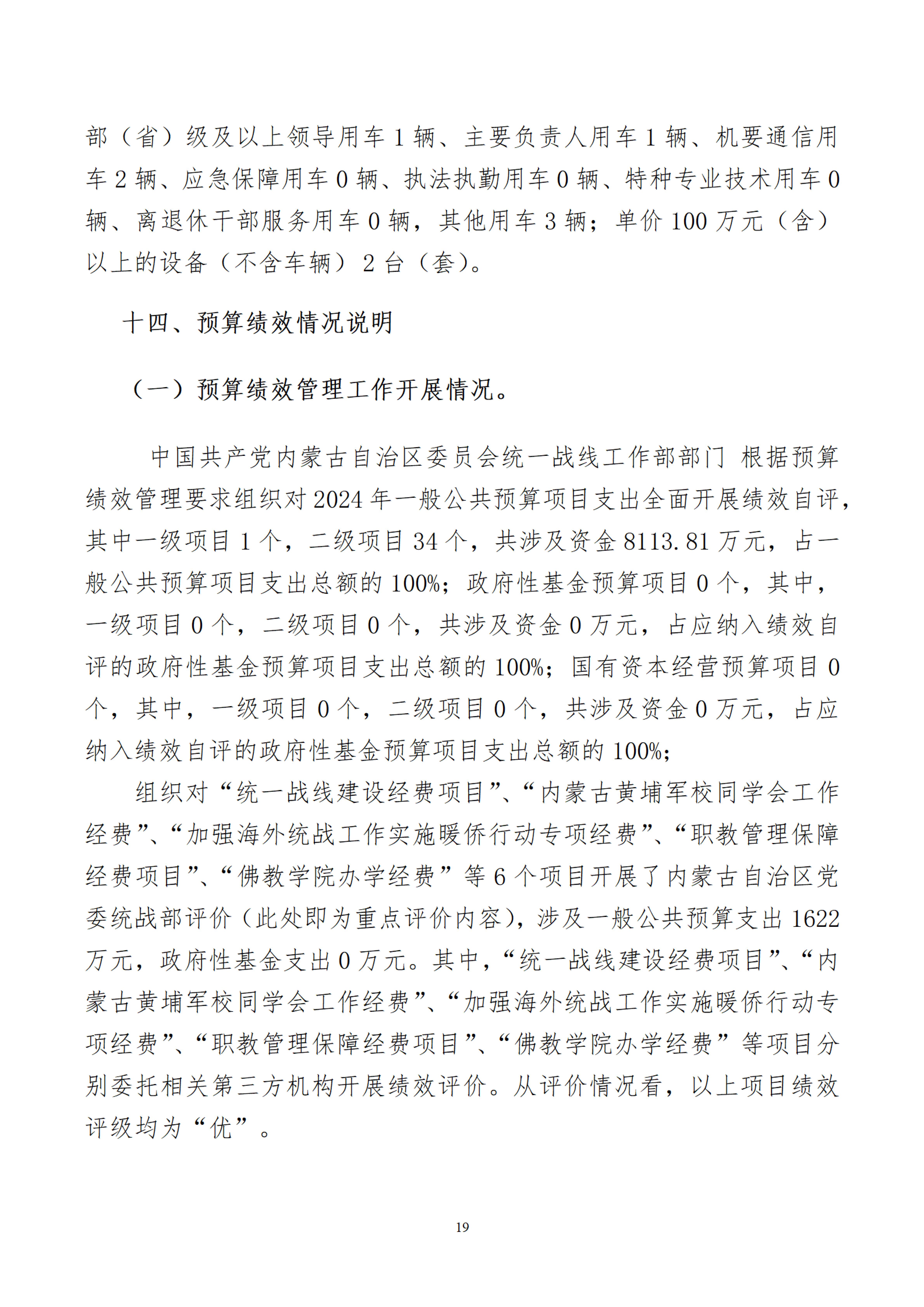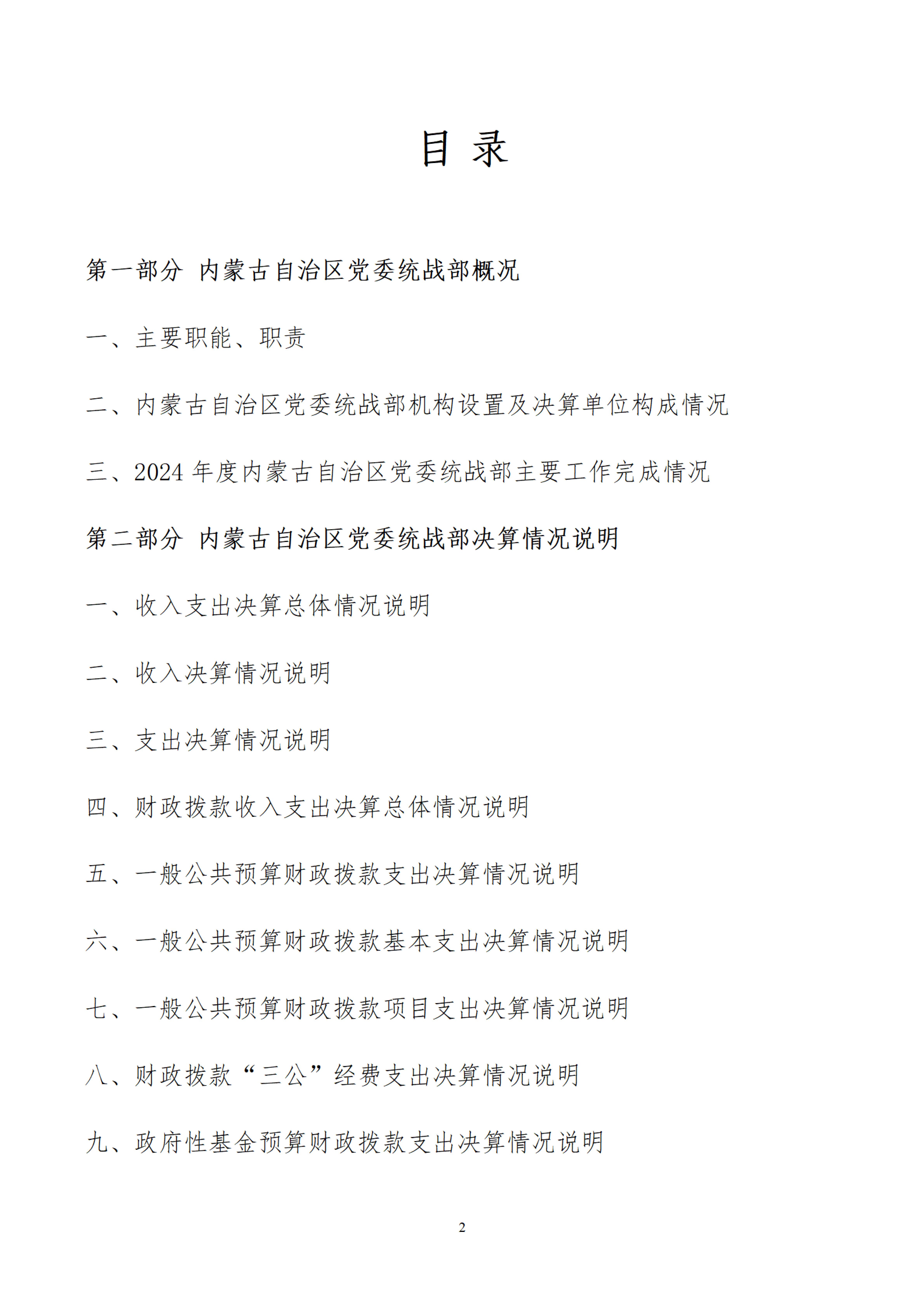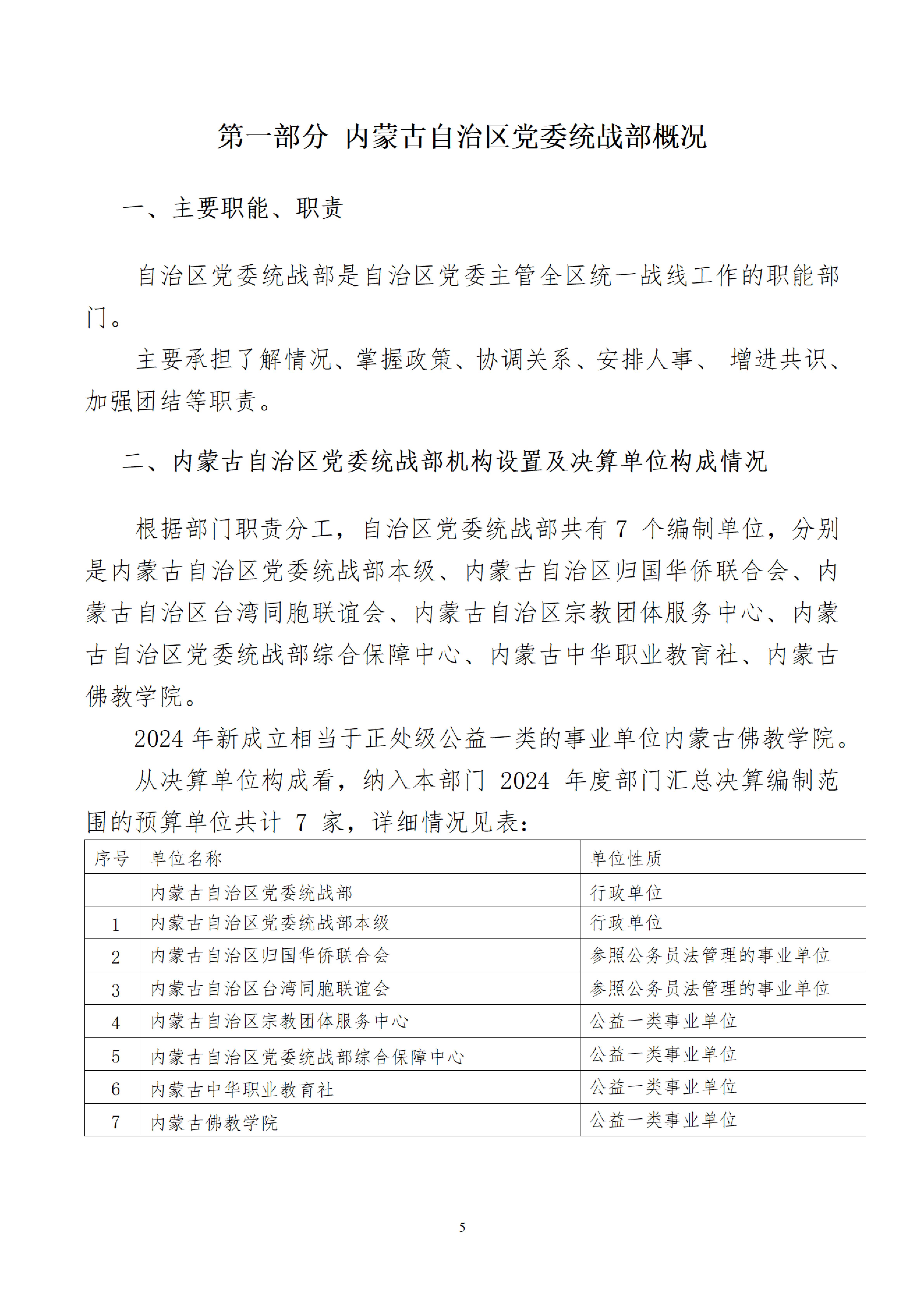 2024年度中国共产党内蒙古自治区委员会统一战线工作部部门公开报告