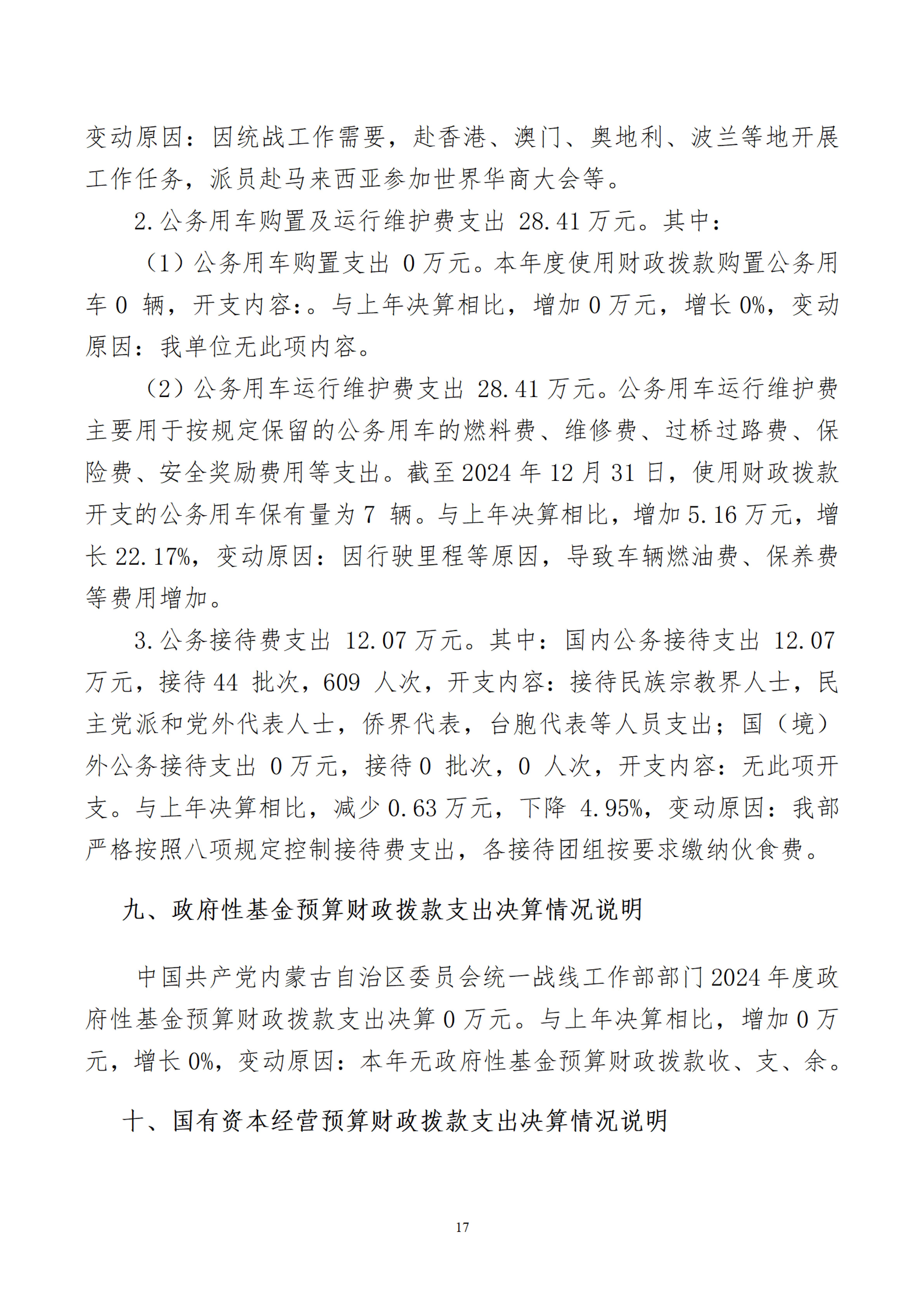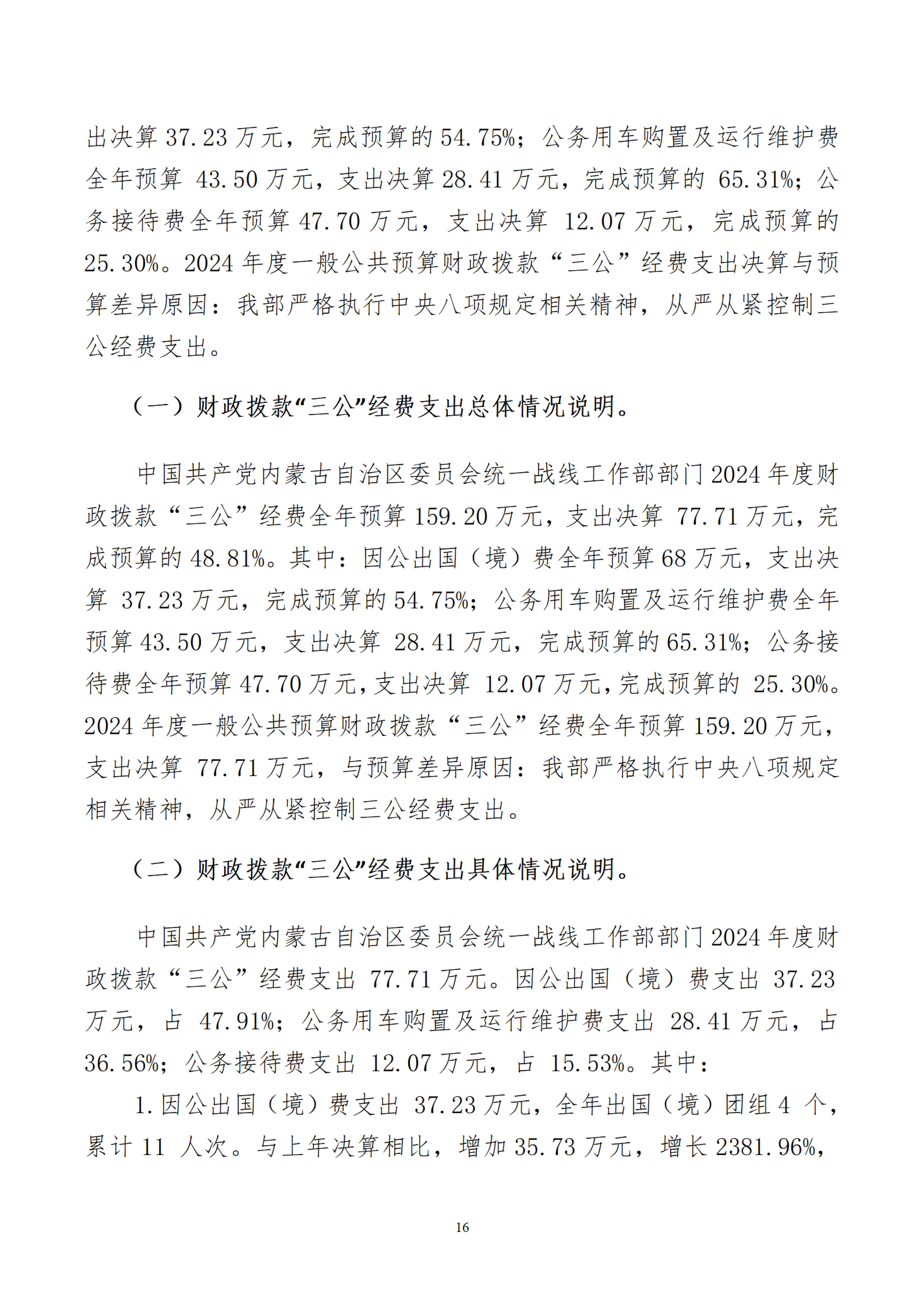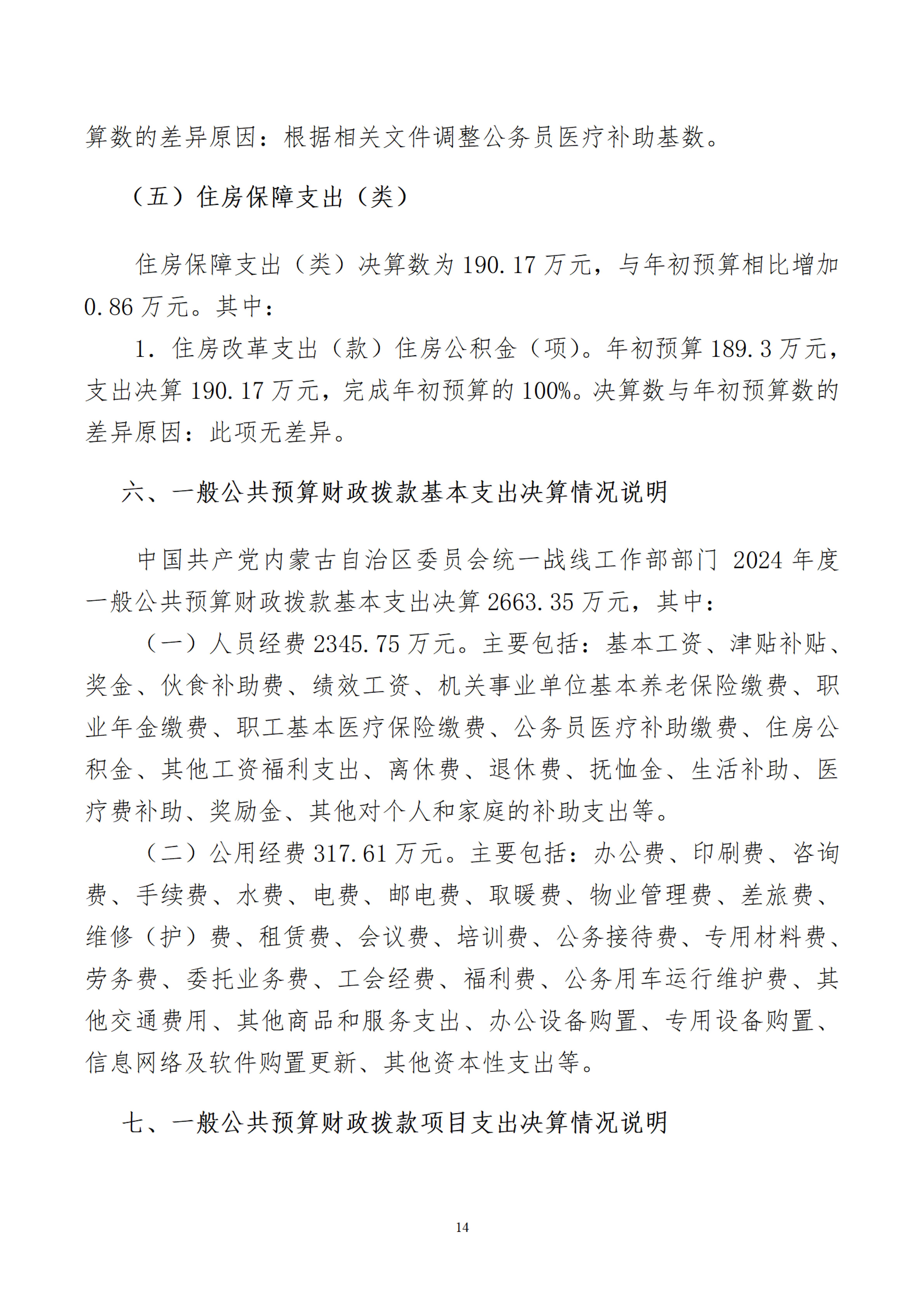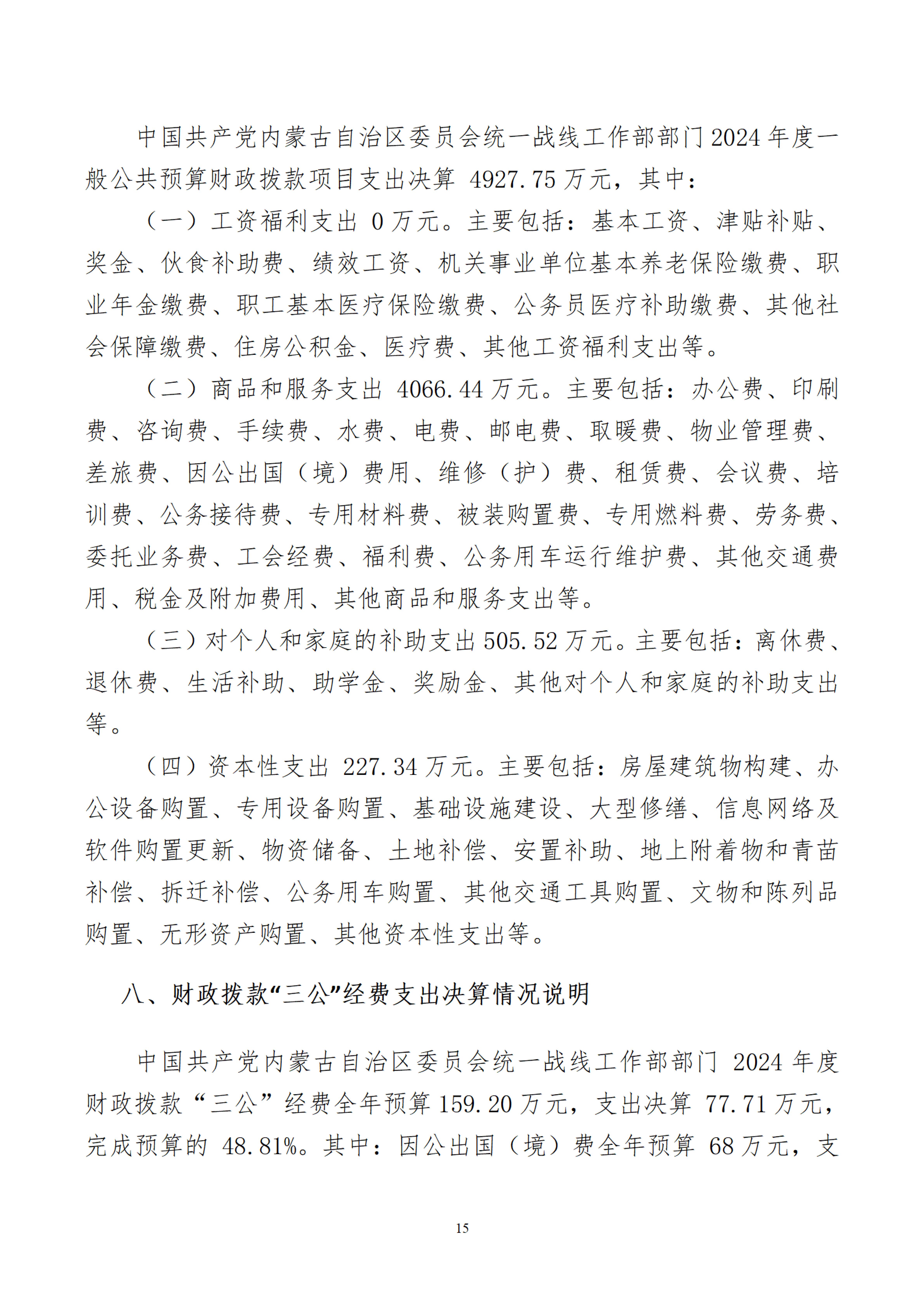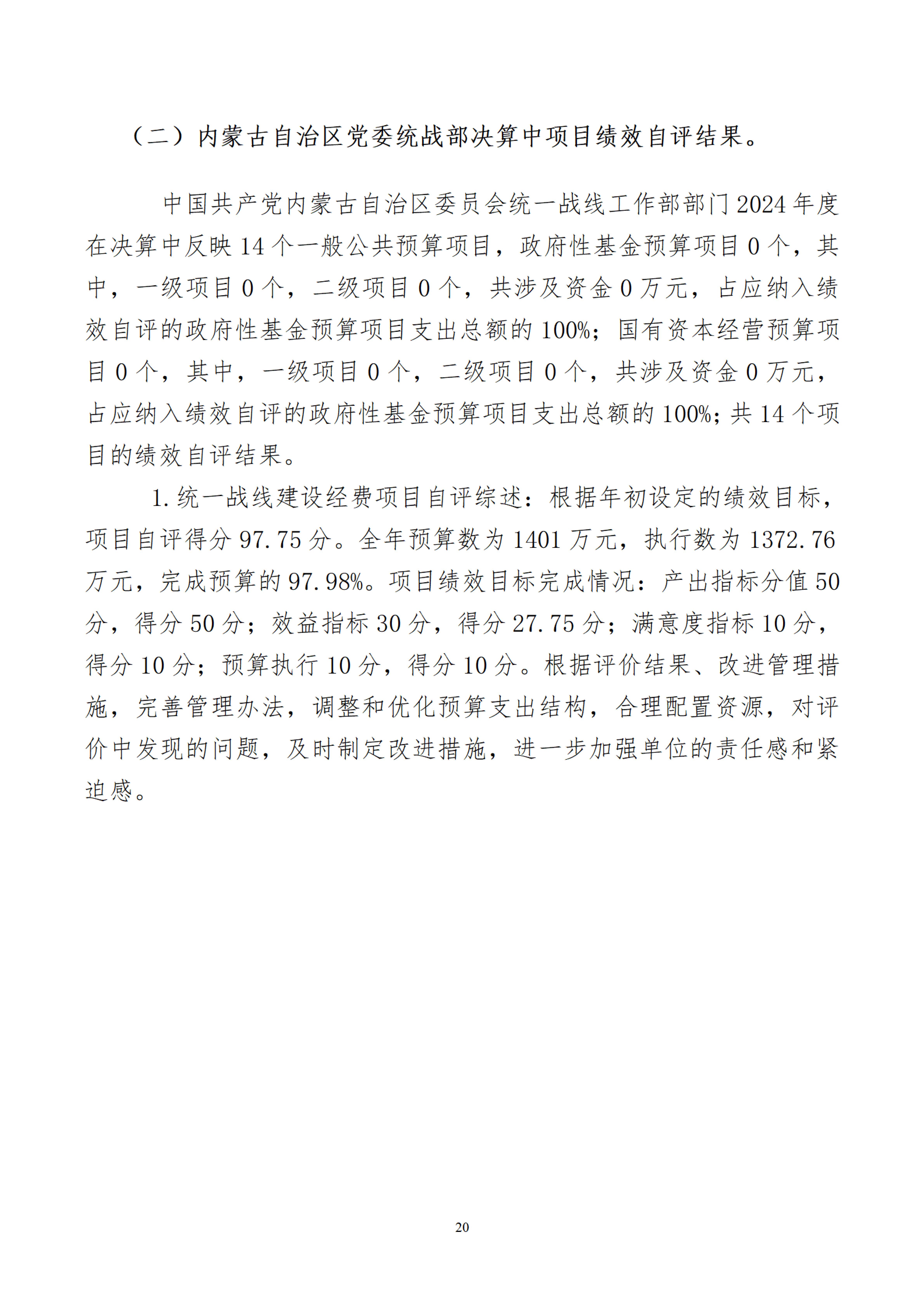 2024年度中国共产党内蒙古自治区委员会统一战线工作部部门公开报告