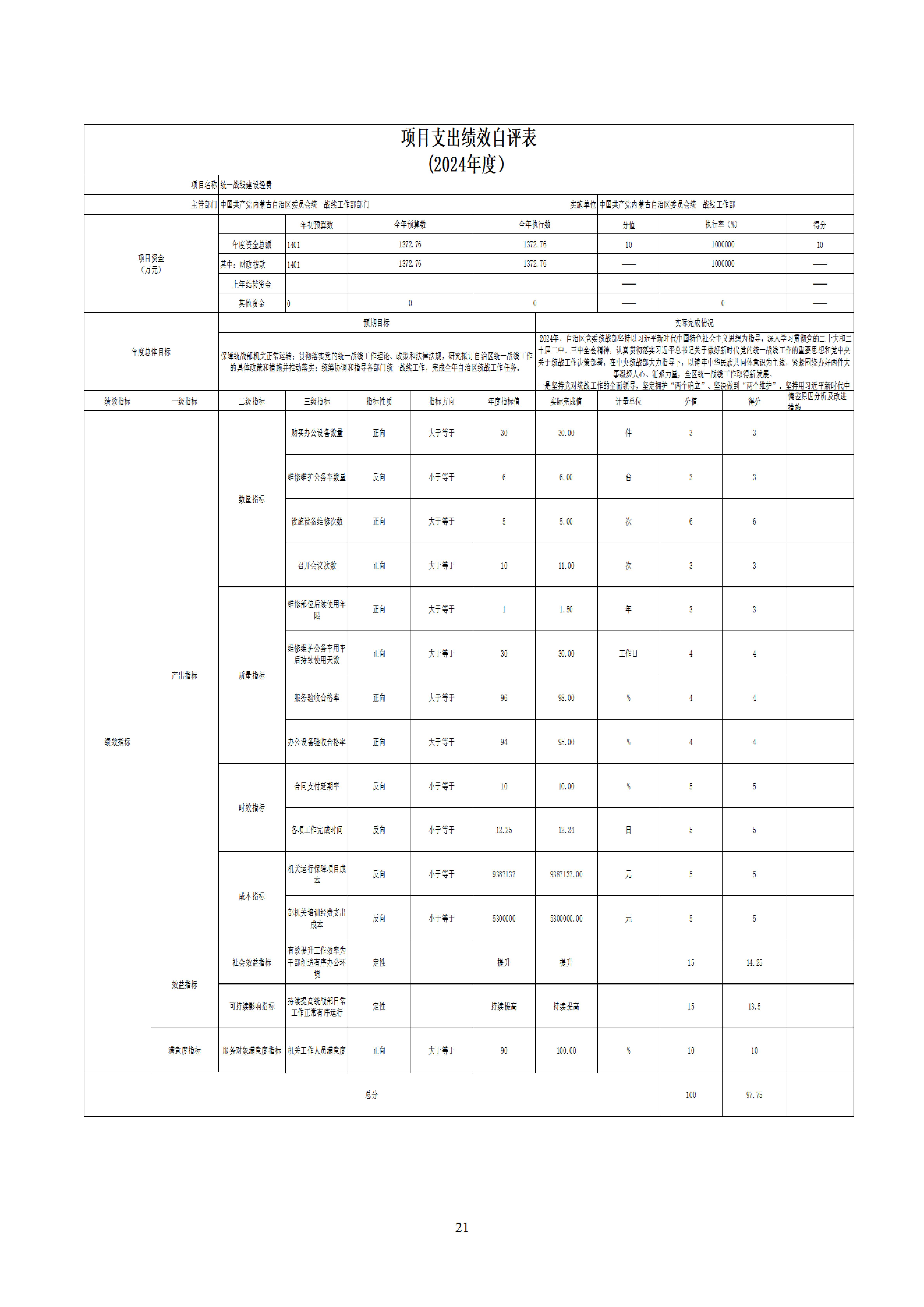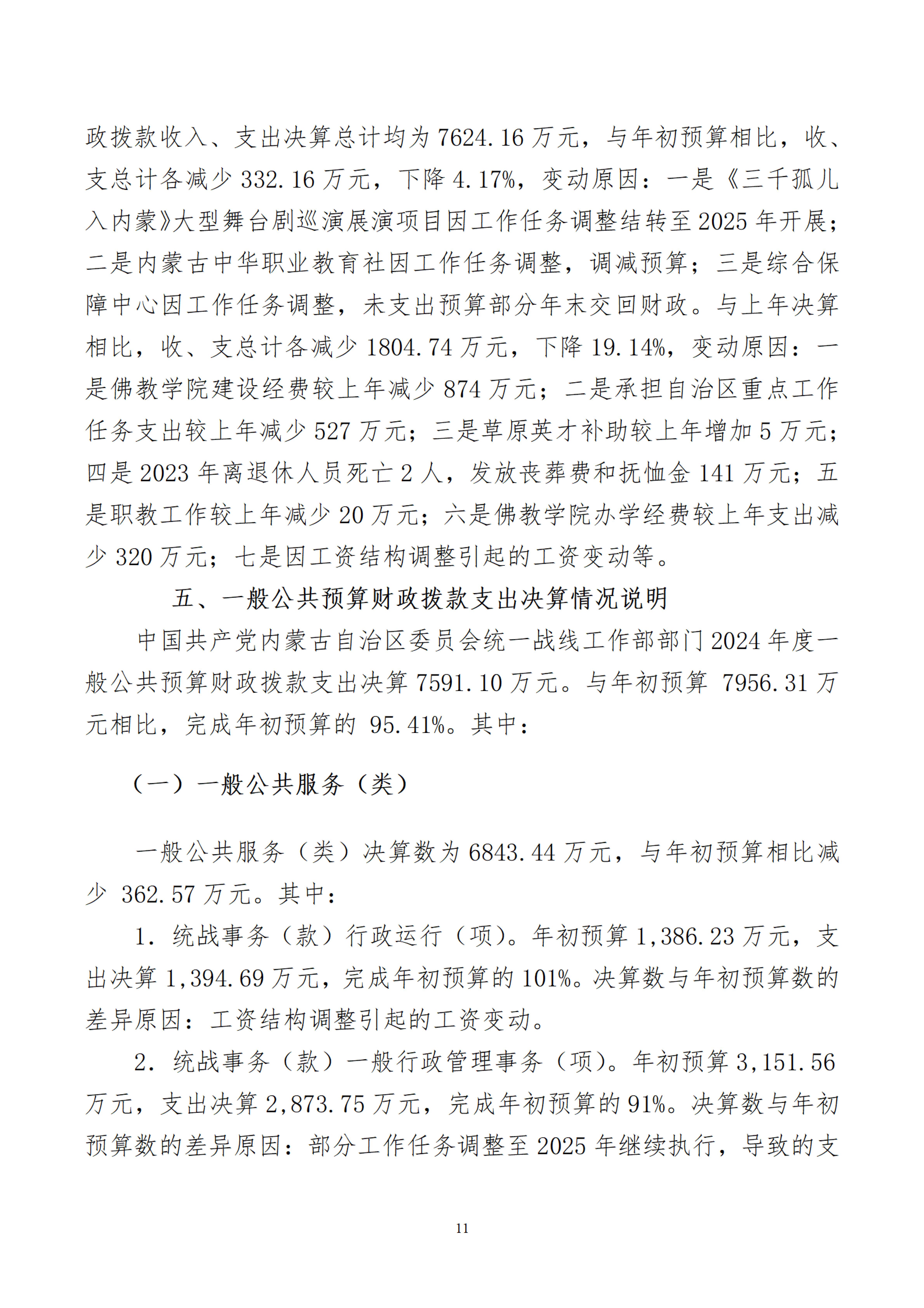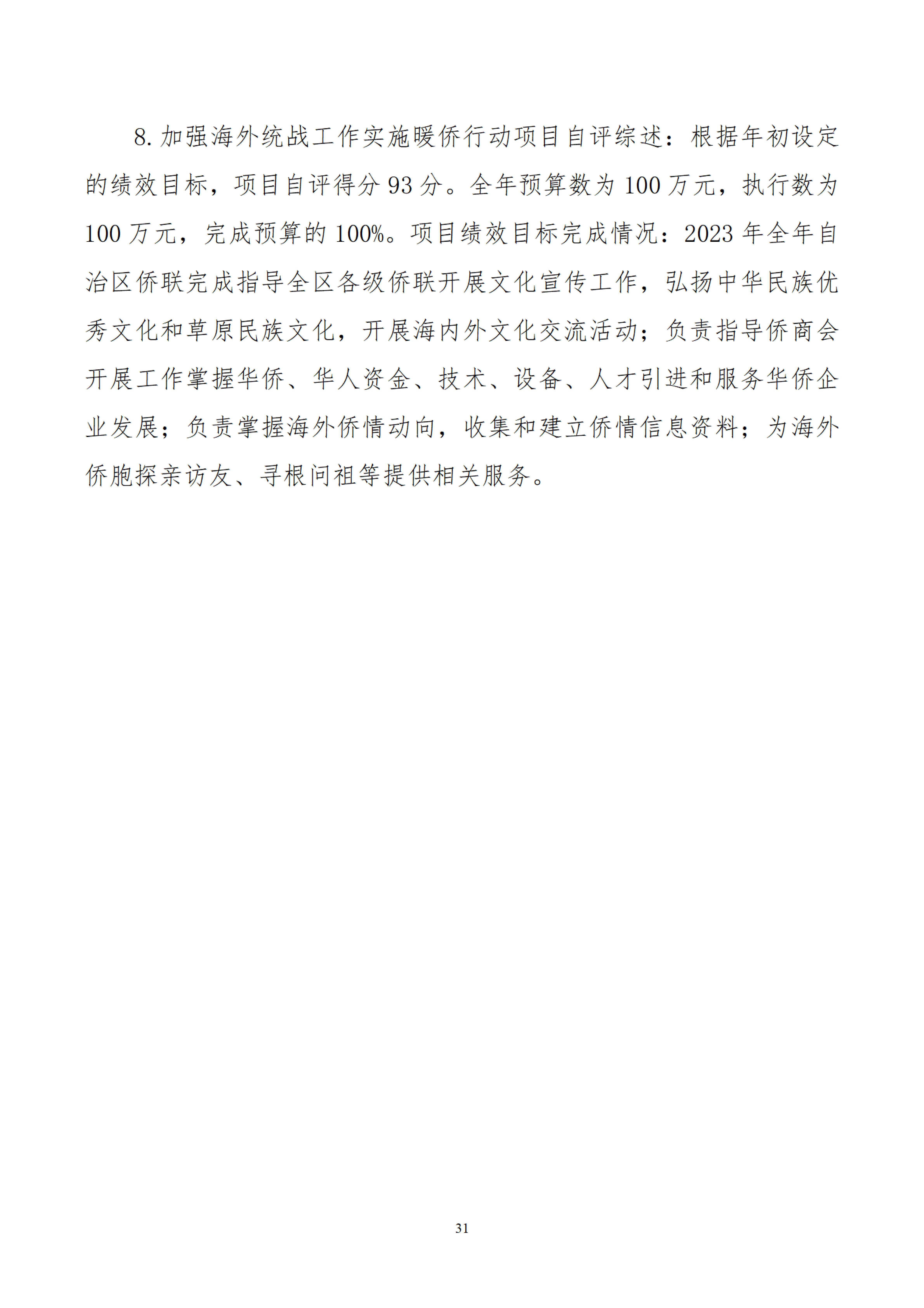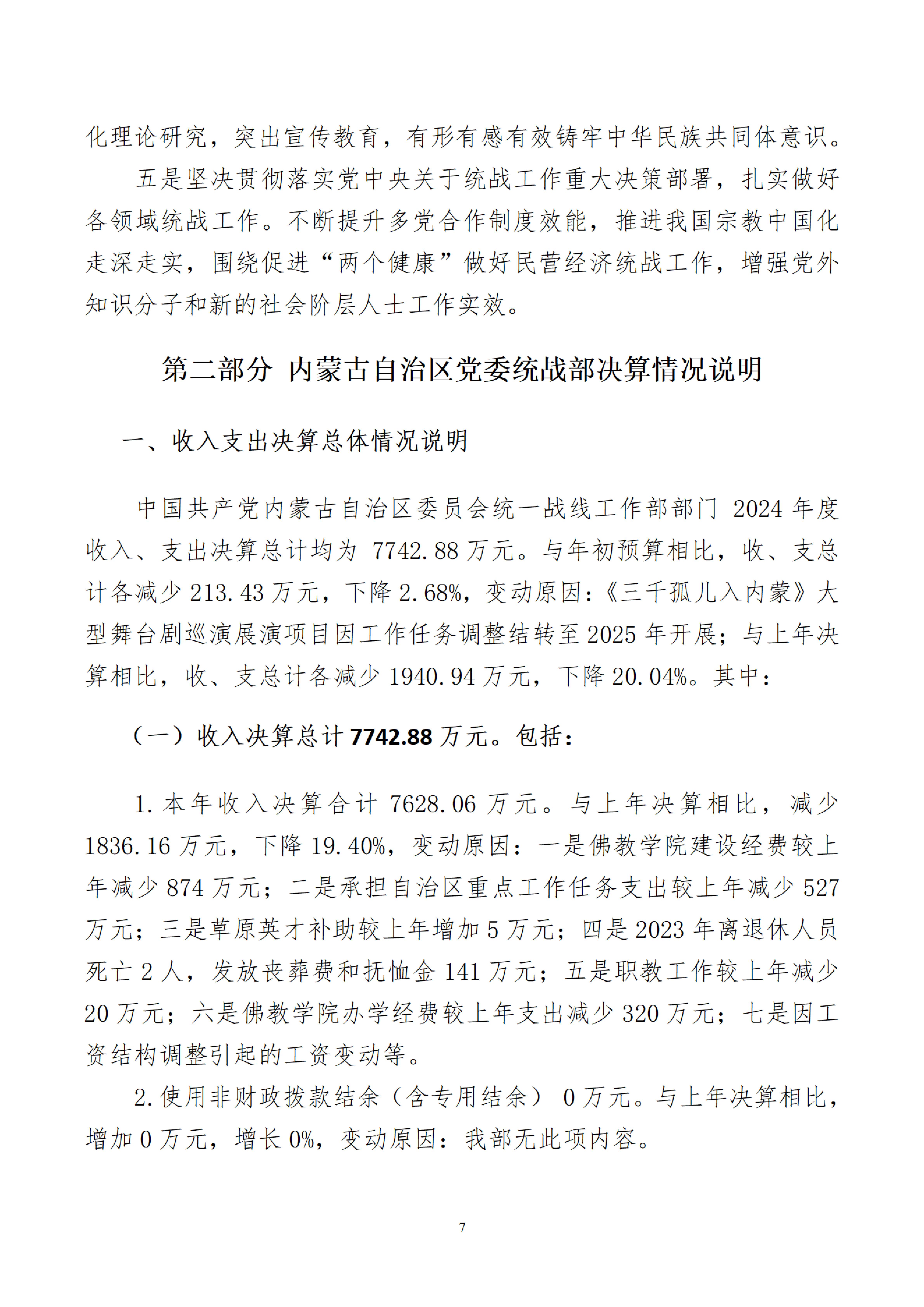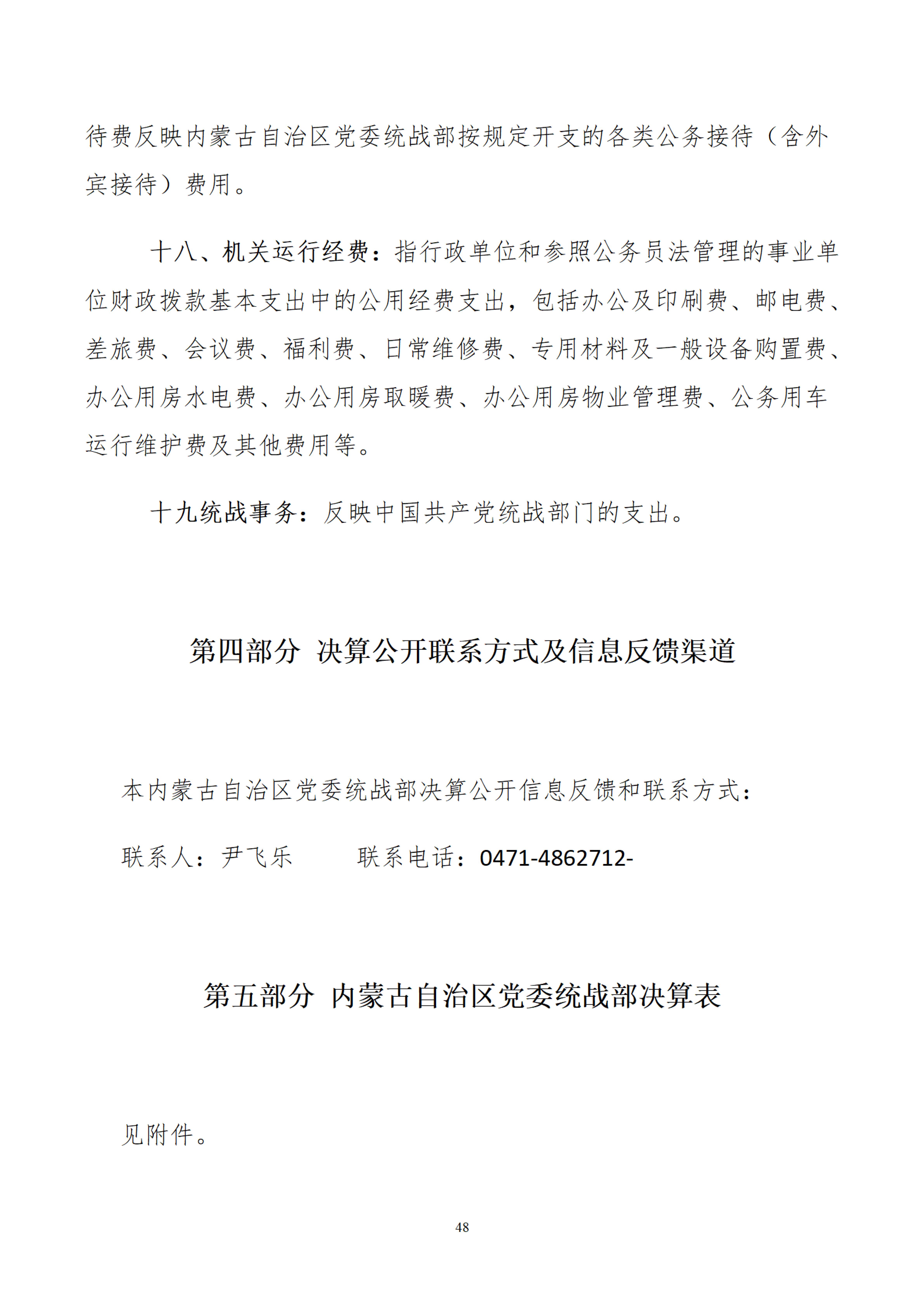 2024年度中国共产党内蒙古自治区委员会统一战线工作部部门公开报告