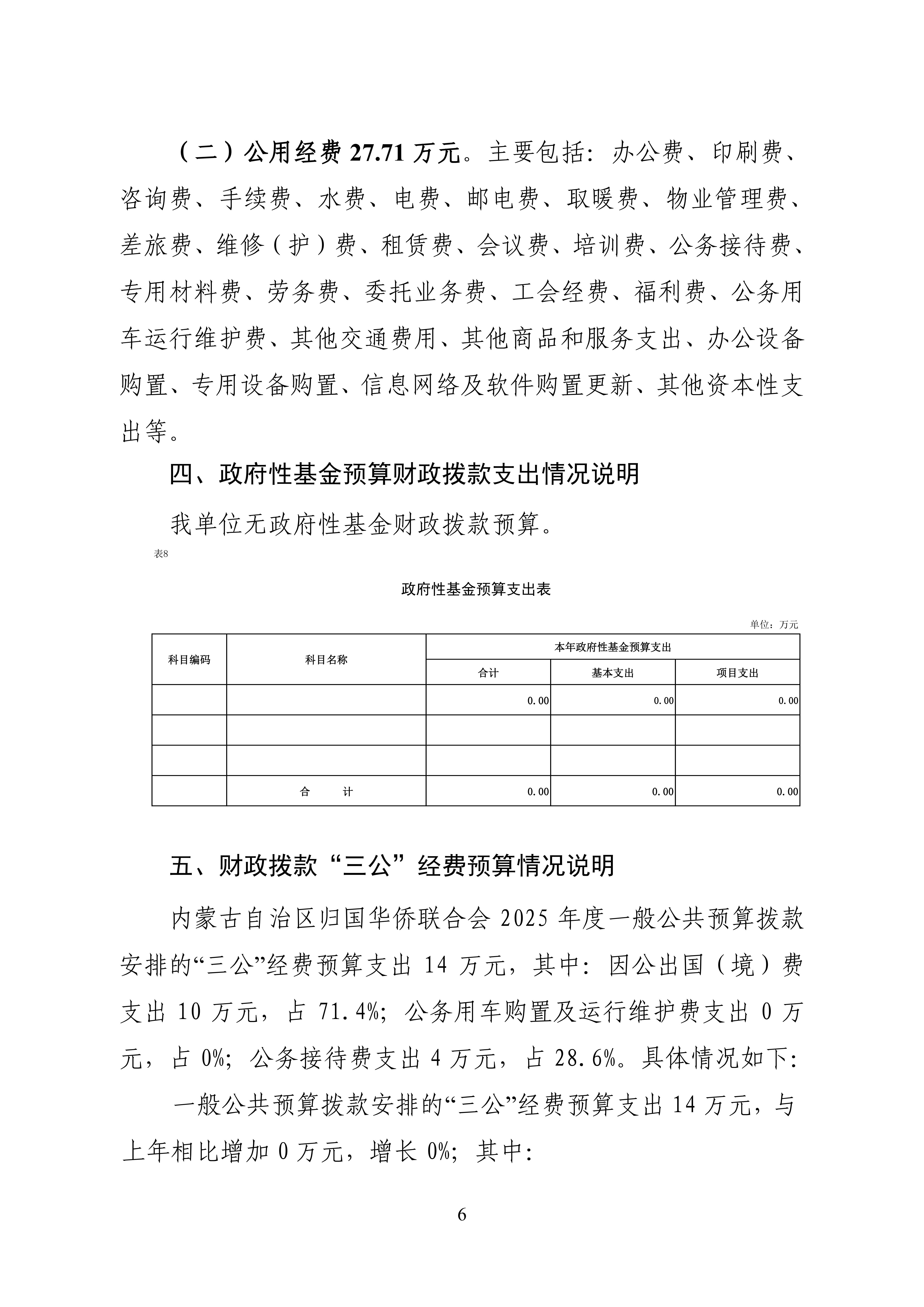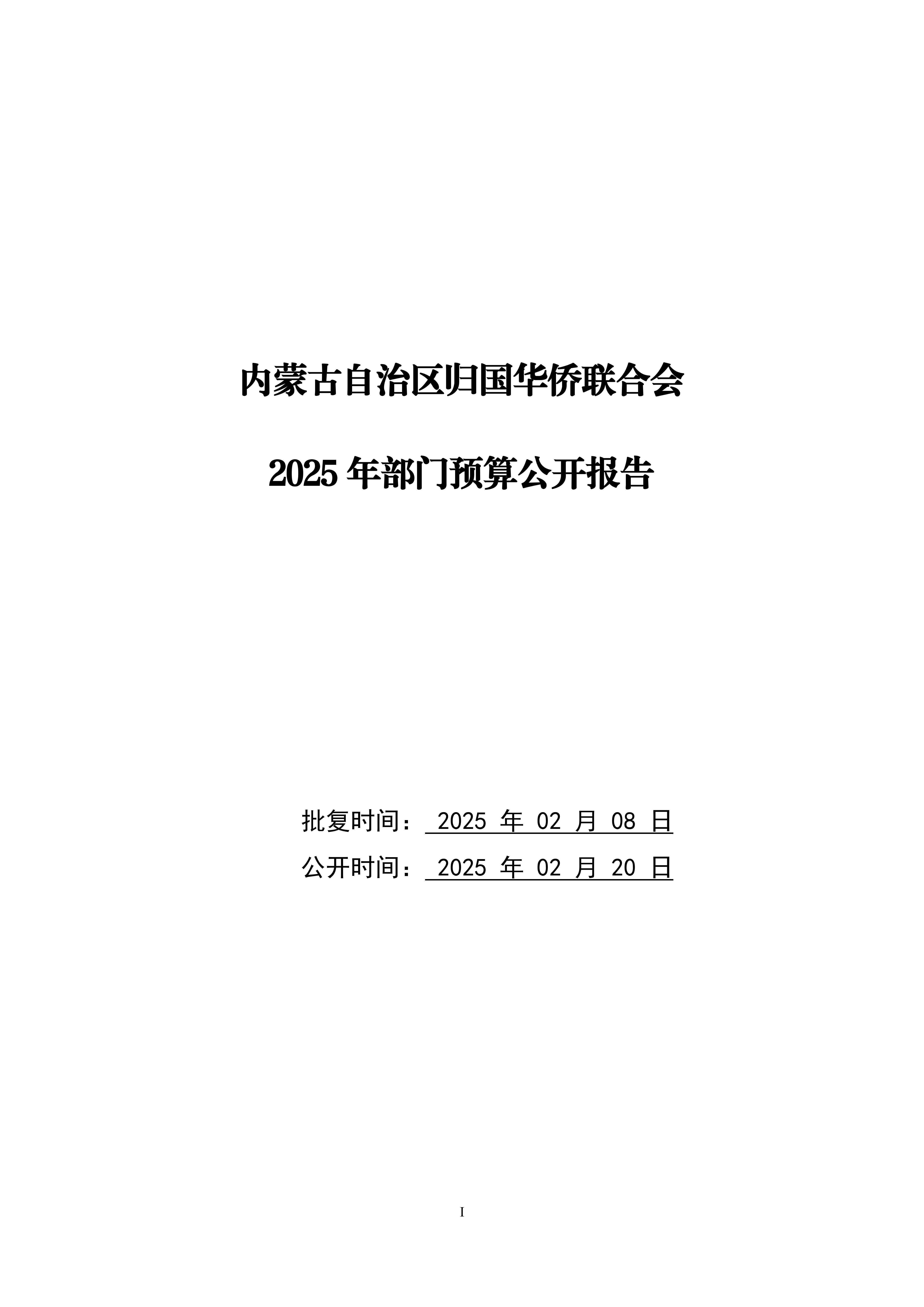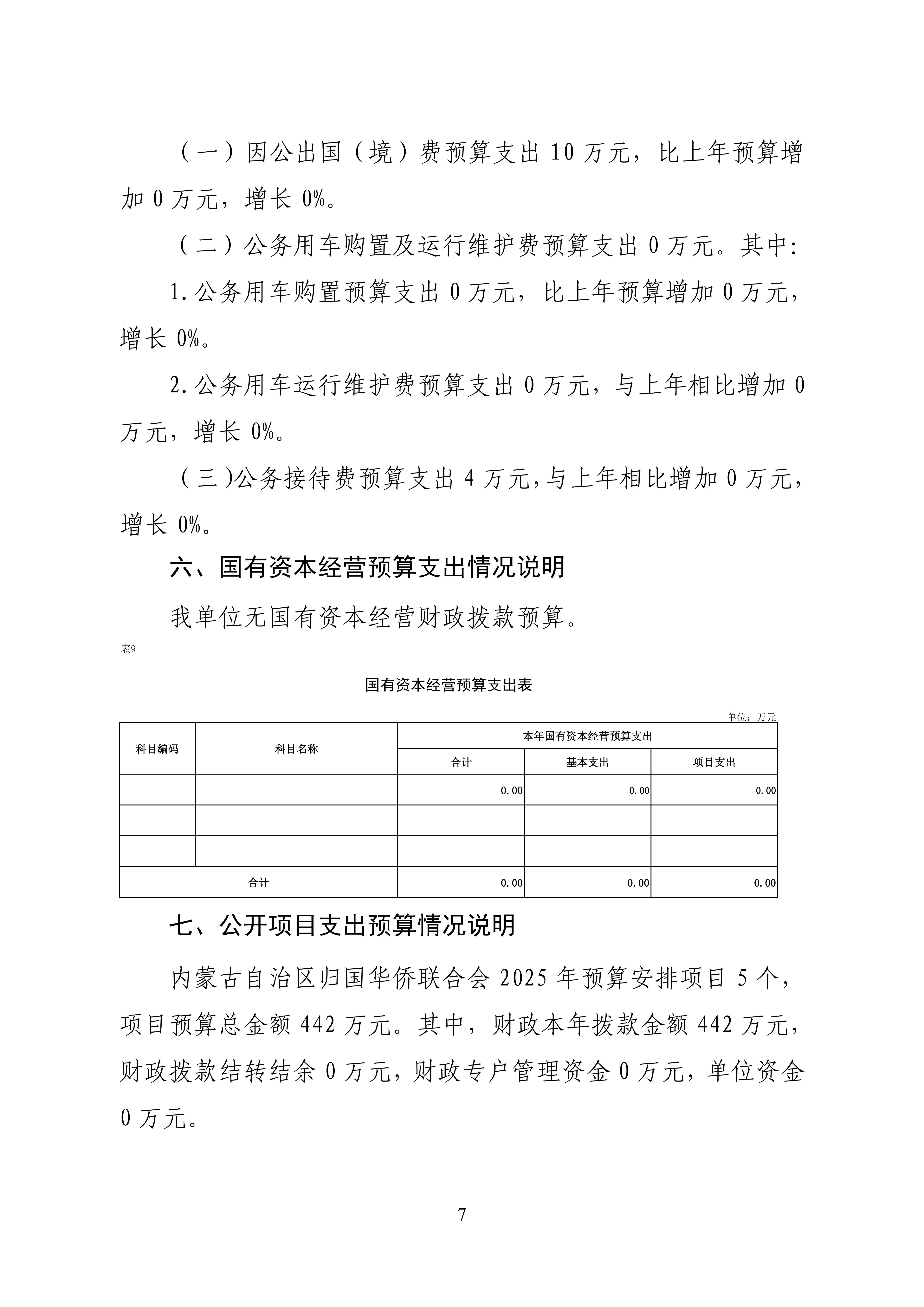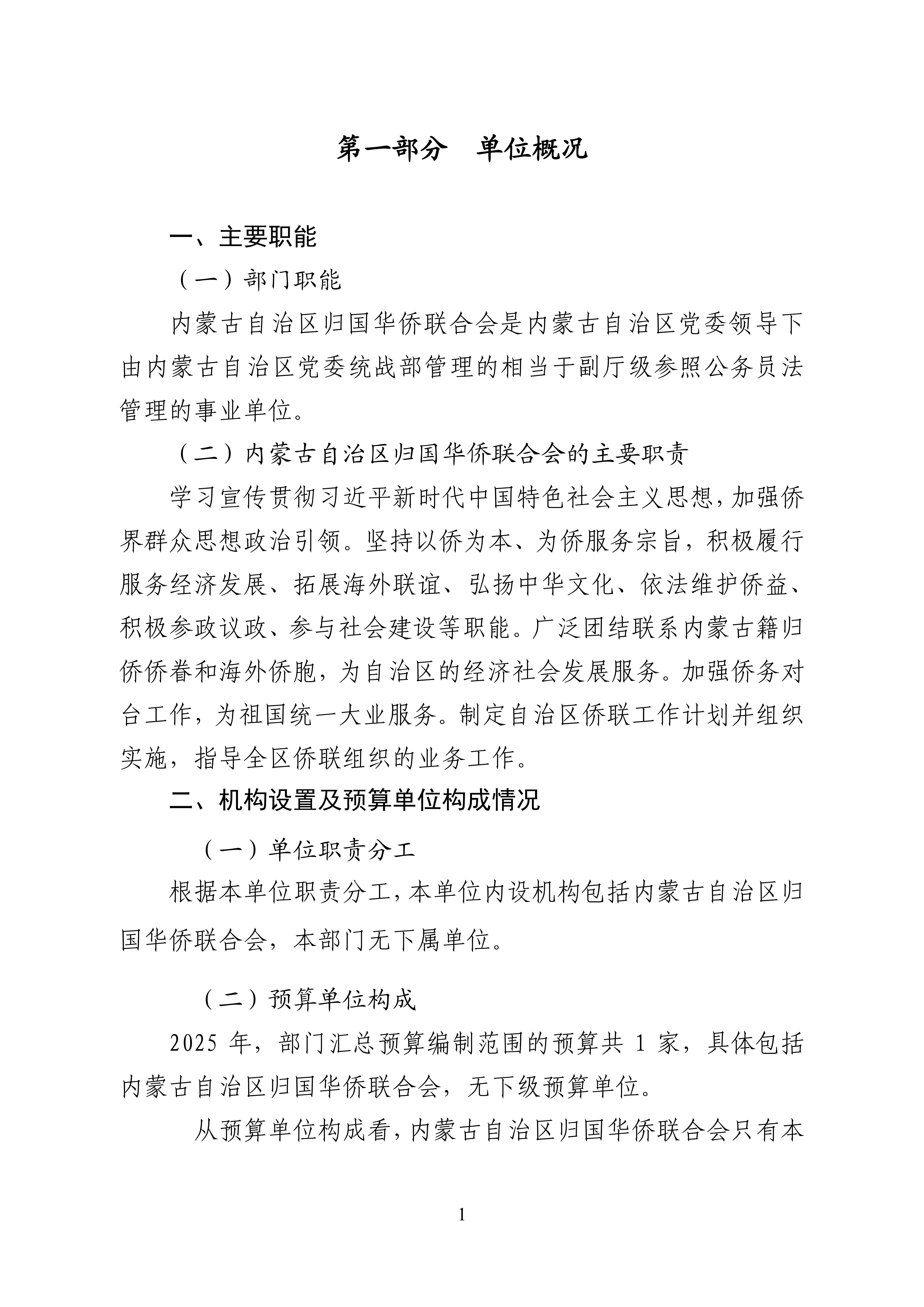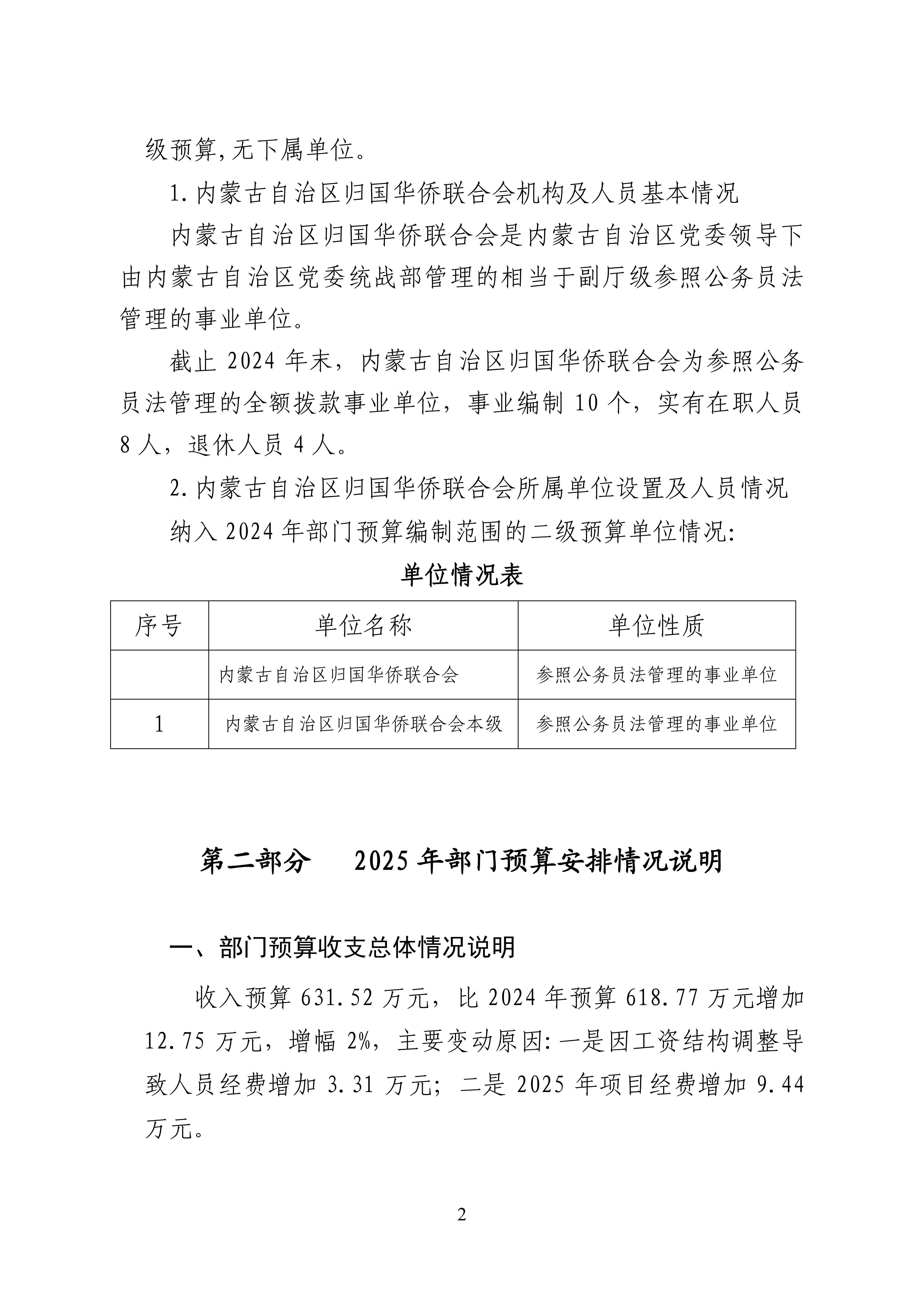 内蒙古自治区归国华侨联合会2025年部门预算公开报告